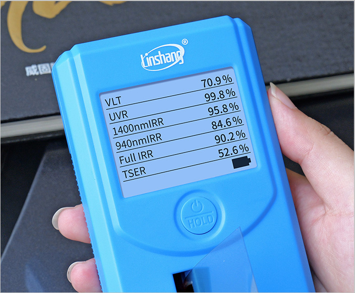 Позволяет измерять такие параметры, как общий коэффициент отражения солнечной энергии (TSER) и общий коэффициент пропускания солнечной энергии (SHGC), что обеспечивает комплексную оценку теплоизоляционных свойств солнцезащитной плёнки.