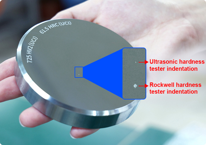Используется метод ультразвукового контактного импеданса (UCI). В процессе измерения на поверхности образца остаётся лишь микроскопический отпечаток, не повреждающий изделие. Это обеспечивает полностью неразрушающий контроль твердости деталей высокой точности и готовых компонентов.