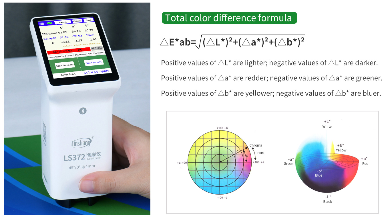 Поддерживается выбор стандартного цвета из сохранённых данных или встроенных каталогов для сравнения цветовых различий. Также можно напрямую вводить значения Lab или других цветовых пространств в качестве стандарта. Это избавляет от проблем старения или выцветания эталонных образцов, делая сравнение более гибким и эффективным.